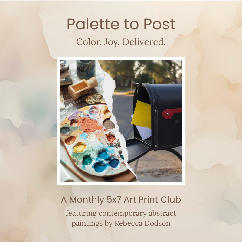 Palette to Post is a monthly art print subscription featuring original abstract artwork, created and printed by the artist and delivered directly to your mailbox.